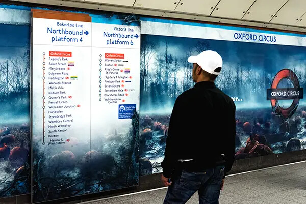 Przykładem takich działań jest billboard znajdujący się na londyńskiej Old Street. Dzięki instalacji dłoni potwora, która zdaje się sięgać po billboard oraz dyniowego pola wokół nośnika, obok reklamy nie można przejść obojętnie.