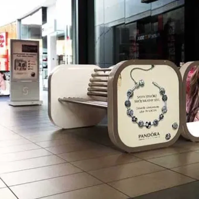 ławki reklamowe w centrum handlowym Silesia