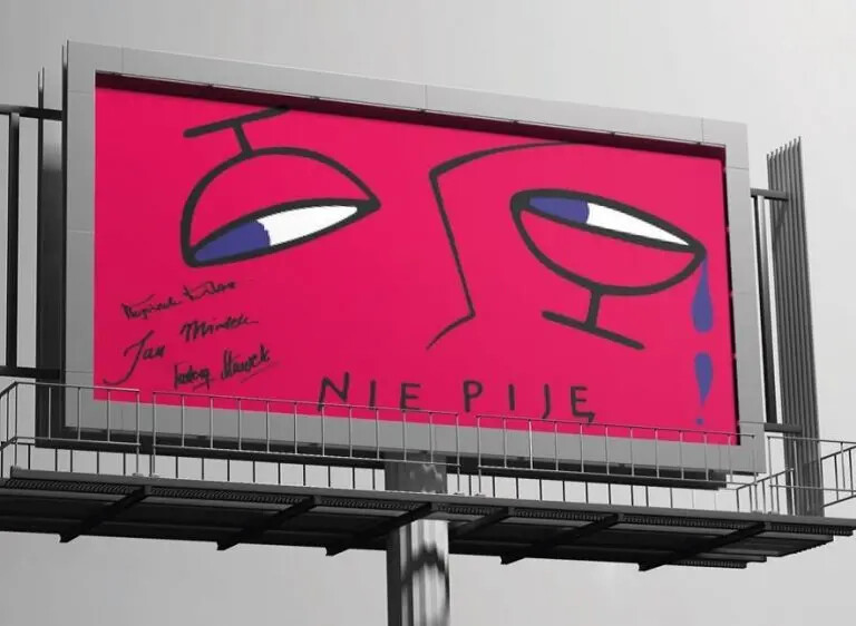 One of our first campaigns (1999). The slogan "I don't drink" was signed by Wojciech Kilar, prof. Jan Miodek and prof. Tadeusz Sławek.